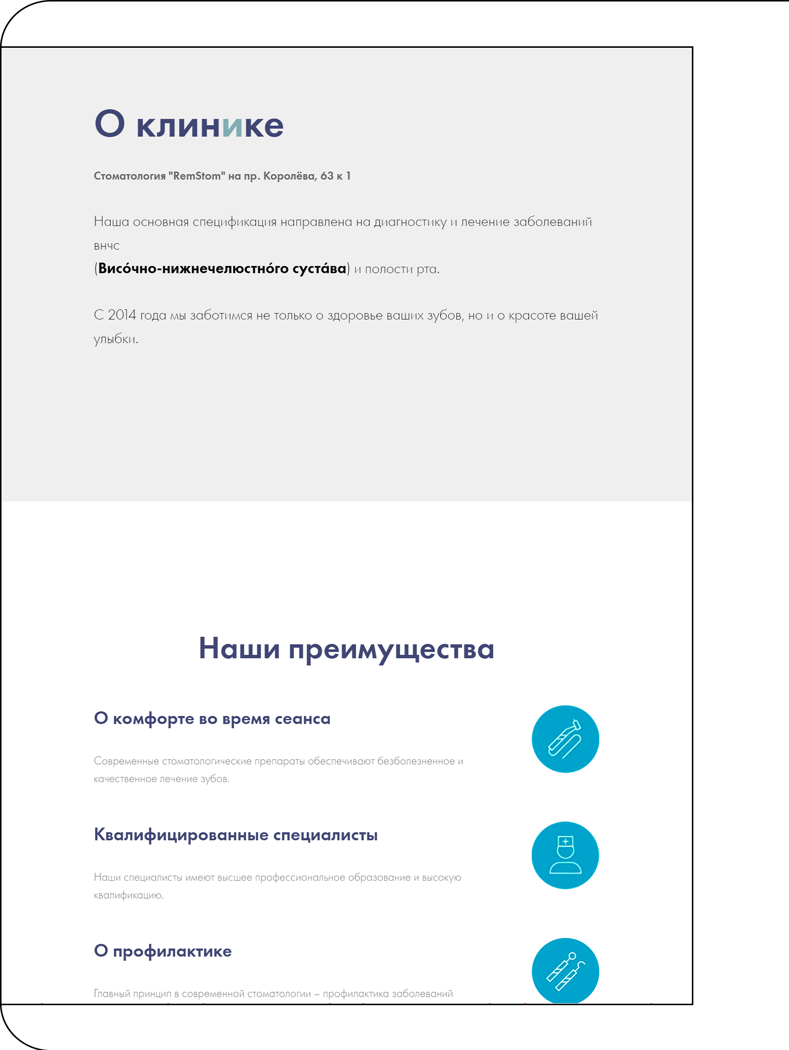 Стоматологическая клиника предоставляет такие услуги, как: имплантология, пародонтология, хирургия, протезирование, ортопедия, эндодонтия, терапевтическая стоматология, анестезия, большой и малый функциональный анализ.